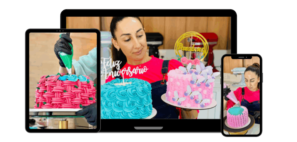Somando tudo são mais de 100 vídeo aulas completas em passo a passo, onde você vai aprender todo o processo para se tornar uma confeiteira de sucesso, desde o básico até decorações avançadas em confeitos, chantilly e chantinho.